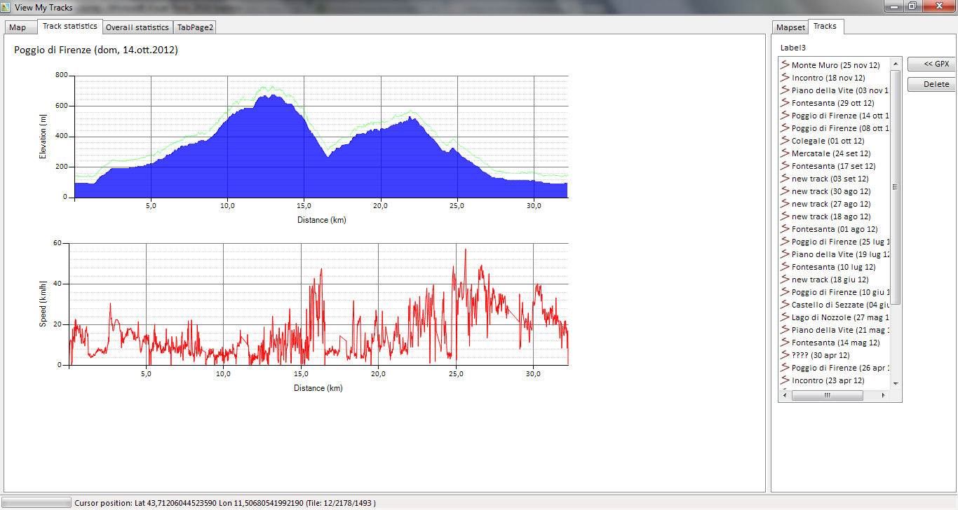 VMT allows to view your gps tracks on various formats of map, and to analyze the track performance both on numeric and graphical format.