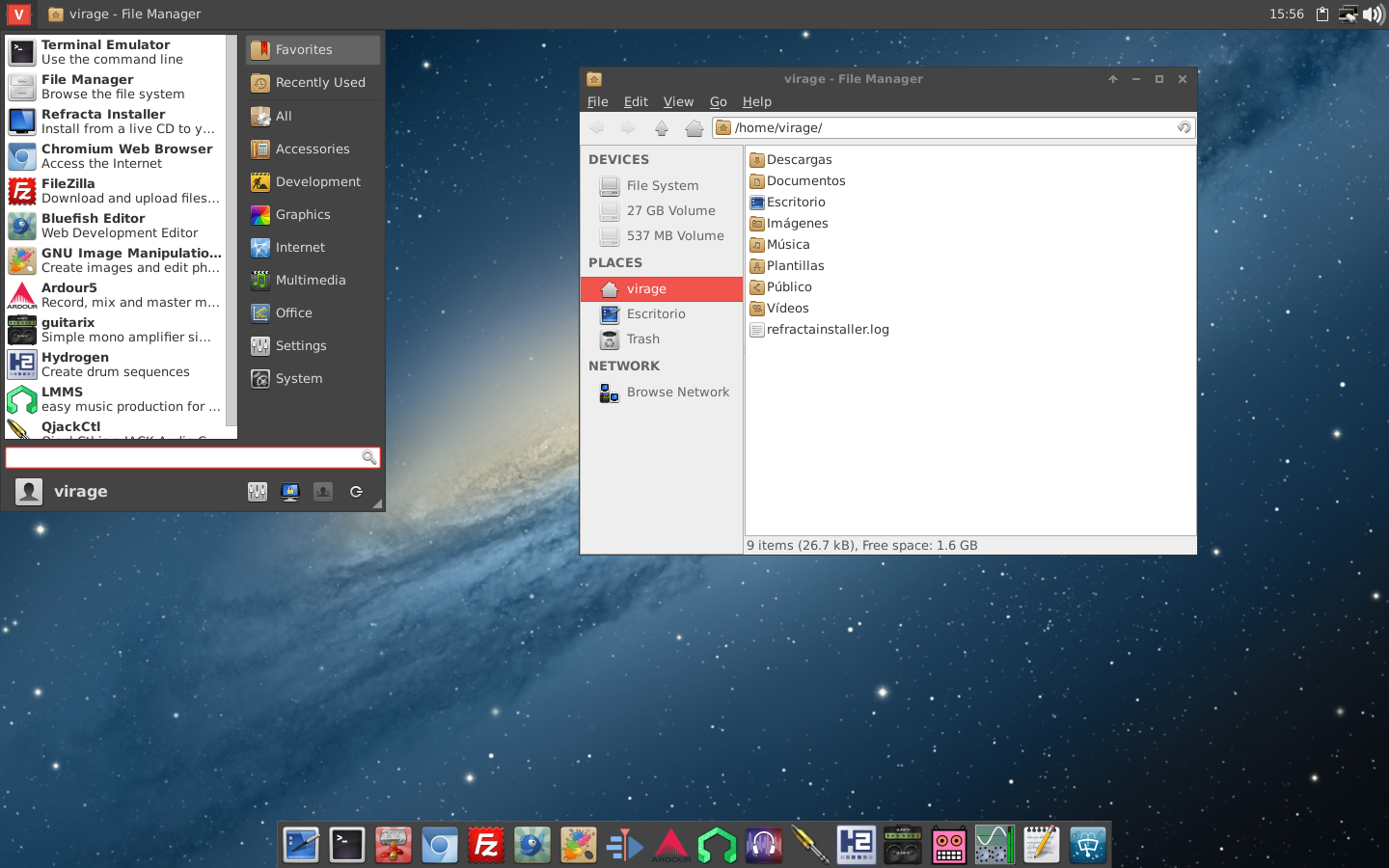 - Virage ships with XFCE4 4.14 desktop, Linux XanMod 5.10 RT and SysVinit, it is optimized for real time audio works and to be lightweight and fast