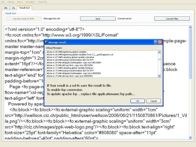 Visual xsltproc is a tool which help to write xslt file, and debug it to find errors. It writes xml, and generates xml (Syntax highlighting of XML & line Nr.). Finally if the result is XSL-FO it generates the pdf on Apache FOP java. Build on QT4.2.