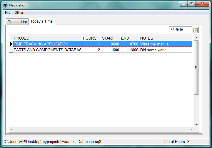 A small program used to track the time you spend on each of your projects. Simply add the time worked for each project. View times by project, or by day.