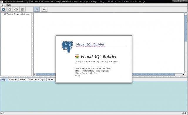 Visual SQL Builder is a graphical PostgreSQL client written in java that will allow users to Visually build a complete SQL statement, without typing any clause. Building complex SQL queries in an easy way, reducing debugging, syntax and logic errors.