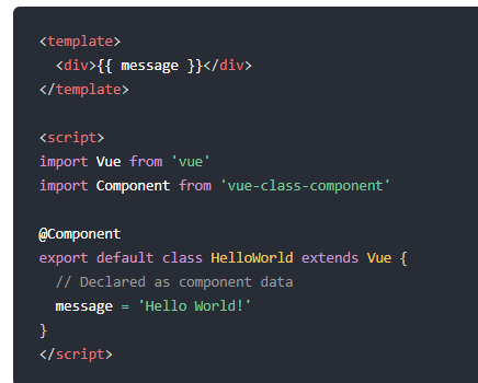 - data, render and all Vue lifecycle hooks can be directly declared as class prototype methods