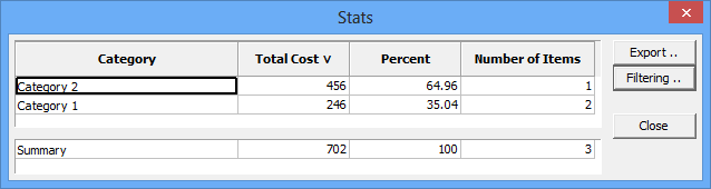 - Items can be grouped into categories