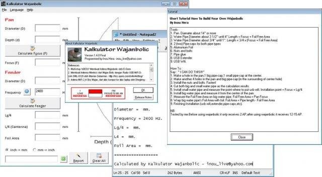 This software is very useful to calculate cantenna/pan antenna dimension without any difficulties.