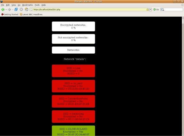 WarDbV "WardrivingDatabaseViewer" is a phpbased solution to output the data from the MySQL database created by kismet for GPSDRIVE. So that you may quickly get statistics and a list of all of your found networks.