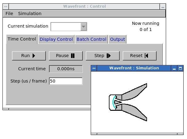 Wavefront is a programme for simulating 2D acoustic systems, with a particular emphasis on determining wavefront shapes at the mouths of horns.