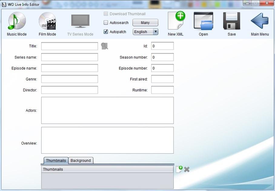 WD Live Info Editor is a smart program that can edit, make new and patch xml files for the WD TV Live 3G and WD TV Hub. Needs JAVA 7 or later to run.