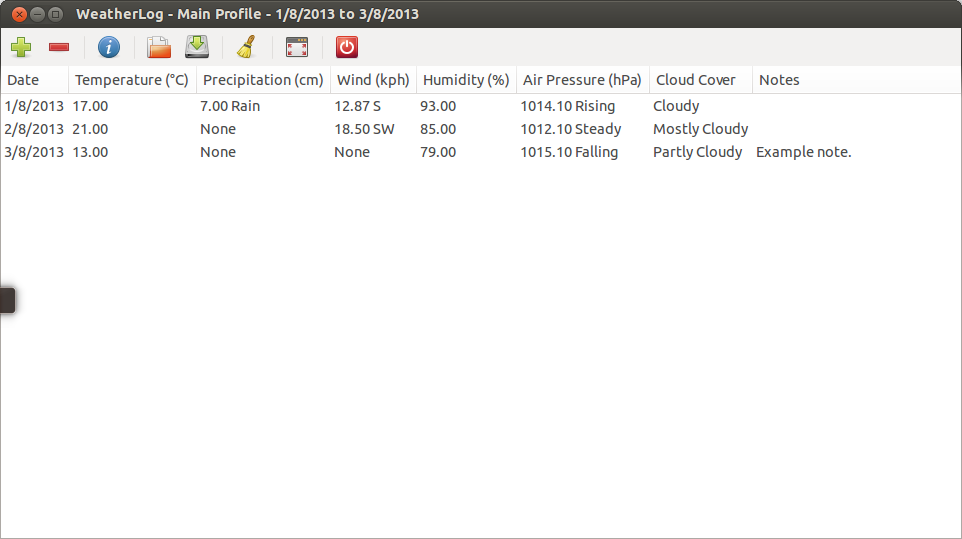 WeatherLog is an application for keeping track of the weather and getting information about past trends.