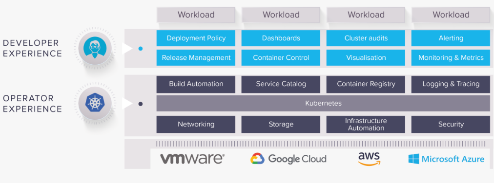 - Portable microservices-based applications consisting of multiple containers can run anywhere
