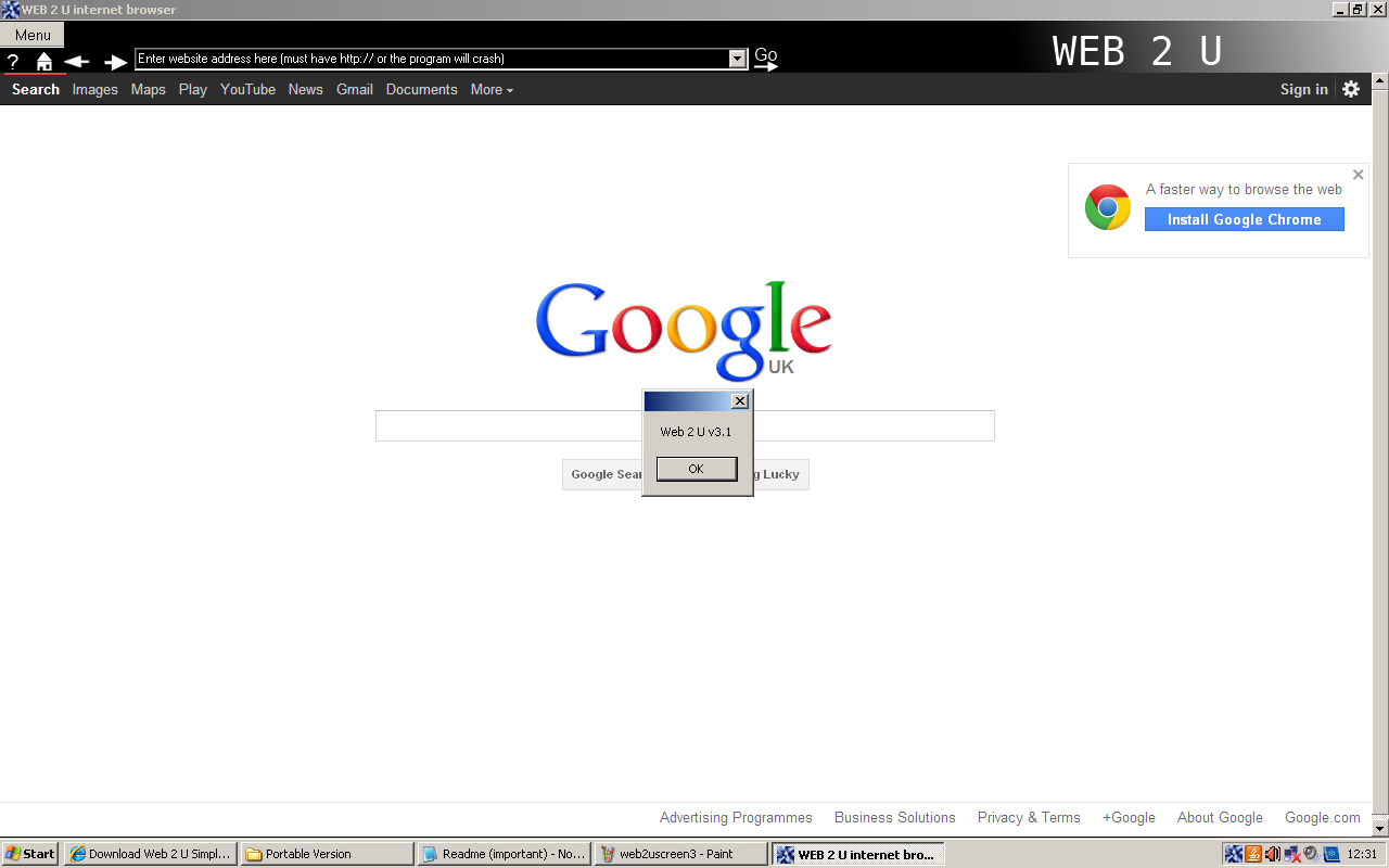 A fast simple web browser that is very easy to use. You must have at least windows xp with the latest .NET (at least v3.5) framework.