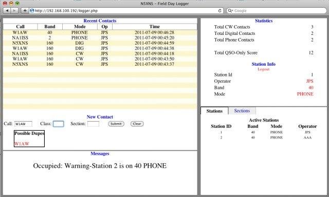 This is a web-based ARRL Field Day logging program. Allows platform agnostic logging of Field Day operations without all the hassle of setting up peer-to-peer network.