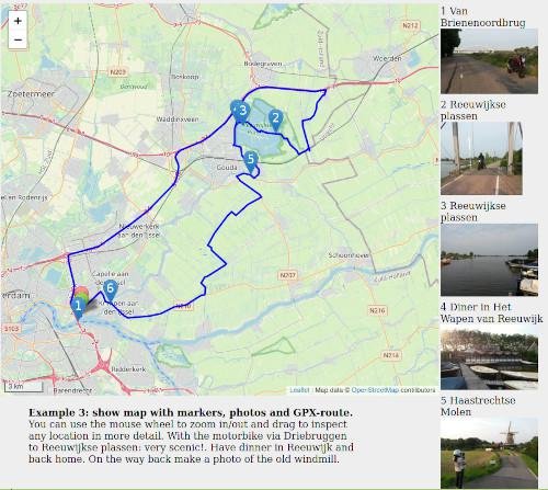 Python script to build a html page with map, route and photos.