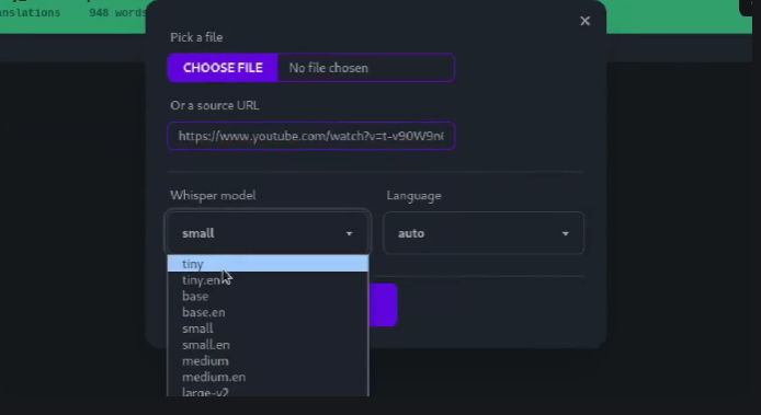 - Translate your transcriptions to any language supported by Libretranslate