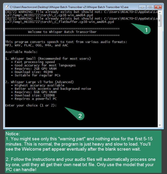 - Includes a python installer to install Python on your computer so you can directly run the 'whisper_transcriber.py' file like you would an .exe by double-clicking it. (I did this because compiling to exe made it slower)