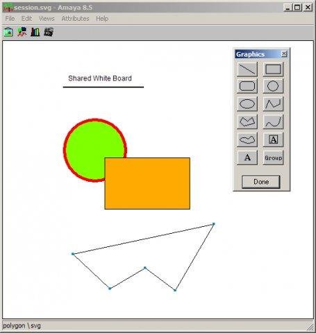 Shared white board using SVG and RTP is an attempt to standardize transport medium, data format and communication protocol for shared drawing sessions. For more details see: http://www1.cs.columbia.edu/~gg2265/report/SharedWhiteBoard_SVG_RTP.htm Browse c