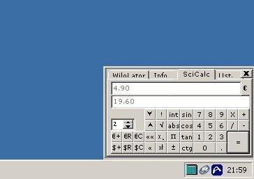 Posiada wbudowany kalkulator, z opcja zaokraglania, pierwiastkami, 2 pamieciami, f.trygonometrycznymi, Pi, przelicznikiem na liczbe bezwzgledna i calkowita.
