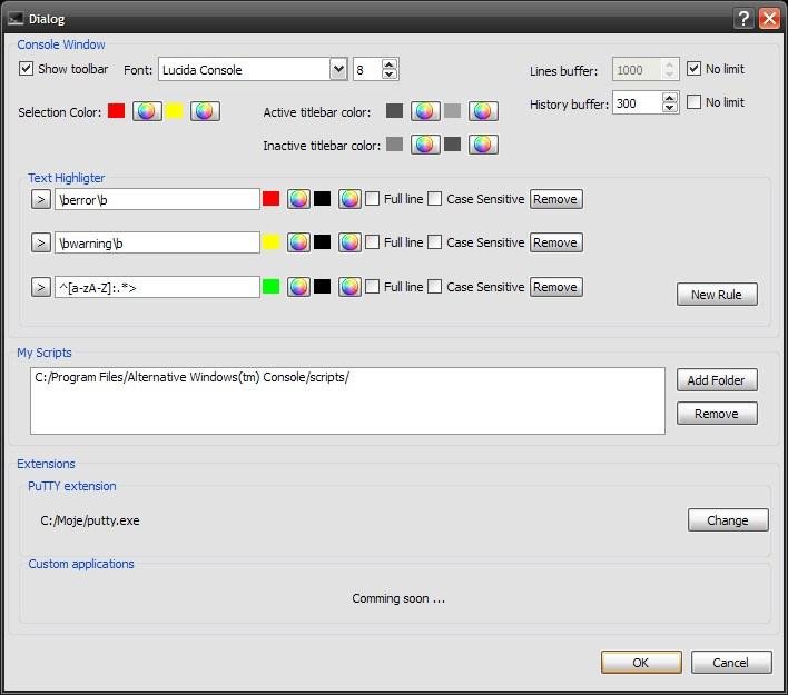 Generally, it works ok. The default size of window panes it a little disappointing, and many of the controls are not intuitive. I don't see a way to change preferences, and I had to dig around to find the scripts directory. Direct access to the directory or a way to edit the scripts from within the program would be nice. I would also like to be able to change the window titles, which was possible with the old puttycm. I had a serious problem when I tried to run calc.cmd which came with the program. It went into an endless loop, spawning new command windows. I had to log out of windows to stop it. I'm also not impressed with the way it launches at startup. Where my Putty sessions were, I now see the Putty configuration window. Seeing nothing would be preferable to multiple copies of the configuration window.