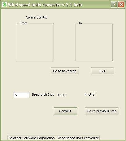 Wind Units converter is a simple program which can be used to convert values from/to units: beaufort, knot, meters per second, kilometers per hour and miles per hour. Very useful for sailers!