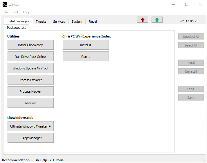 Software installer of a helpful program list, able to do changes on system configuration, updates, execute improves, fixes, executing actions to blow of mouse click.