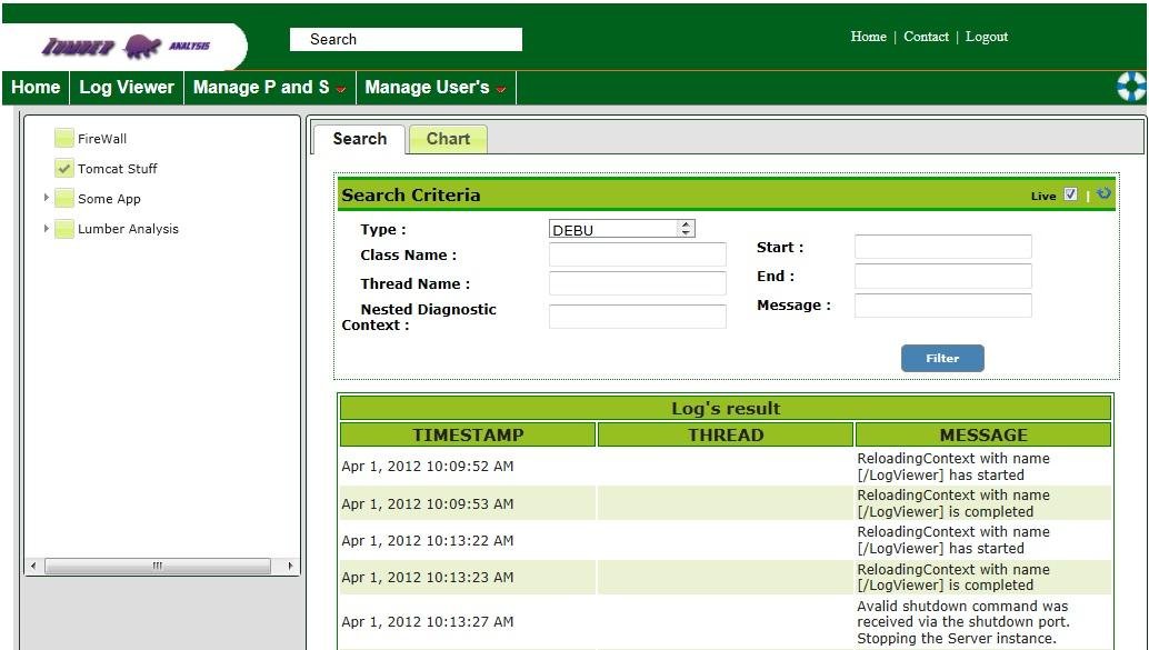 This is a web application, using thing application user can see the log file with multiple search critria.