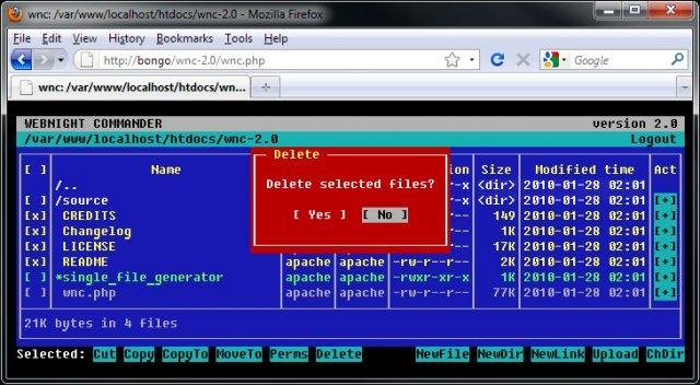 Webnight Commander is web file manager with interface similar to GNU Midnight Commander. The main difference is that Webnight Commander have only one directory panel.