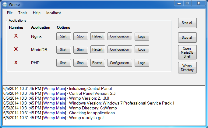 Wnmp is a client which launches Nginx, MariaDB & PHP on Windows Vista - Windows 10. When Wnmp is distributed it includes Nginx, MariaDB, PHP, & phpMyAdmin.