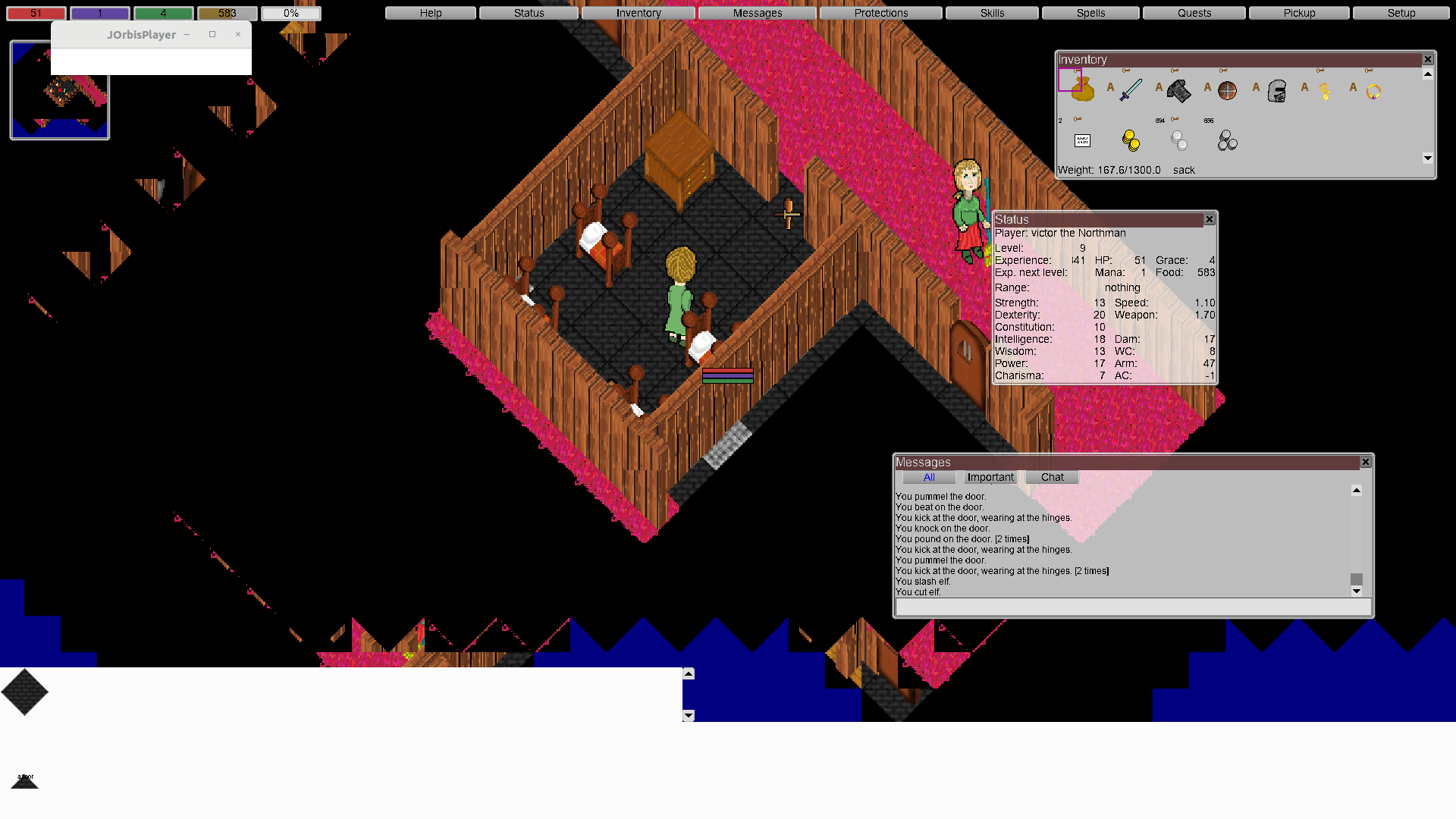 I love working on this project. I've always enjoyed role playing games a great deal, and this one is certainly shaping up to be one of the better ones I have ever played. I always liked the look of 45 degree isometric tiles. GNU/Linux is in need of more rpgs that are playable and not dependency hunt fests. Wograld can be installed relatively easily and plays well on most machines.