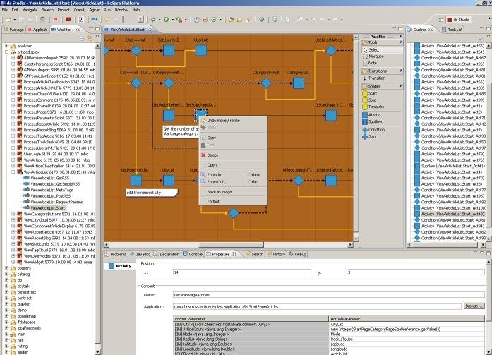 The workflow tool is an extension for the open source Eclipse programming tool from IBM. This workflow tool has been integrated into the dotSource Studio. It consists of 8 individual Java projects, which together form the WorkFlow tool. They logically can be subdivided in core components and graphical elements. About dotSource Labs and Sourceforge, we provide the open source code to interested parties.