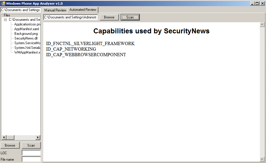An application to decompile and analyse Windows Phone apps specifically focusing on finding security issues.