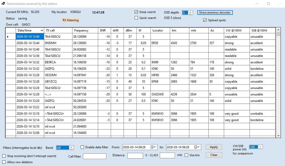 2) WSPR live reporter. This links to wspr.live to retrieve reports of own station WSPR transmissions from receiving stations.