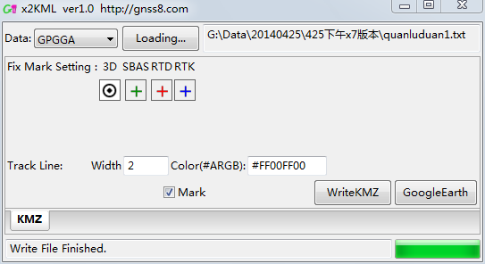 Convert GPGGA, Crescent BIN1 to google KMZ file, support diff 3D Fix, SBAS Fix, RTK and RTK mode