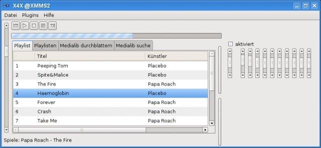 X4X is a java client for xmms2 (and now also for mpd). It supports plugins and uses almost all functions of xmms2.