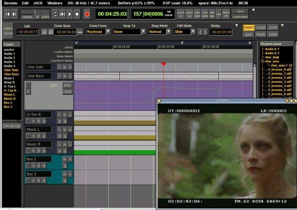 X JAck viDEo mOnitor: xjadeo is a program that displays a video clip in sync with an external time source, most notably jack-transport, LTC and MTC. Applications include: soundtrack composition/editing, video monitoring and -installations.
