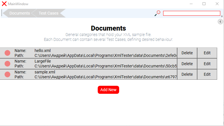 XmlTester allows easy opening and adapting Xml documents to different scenarios.