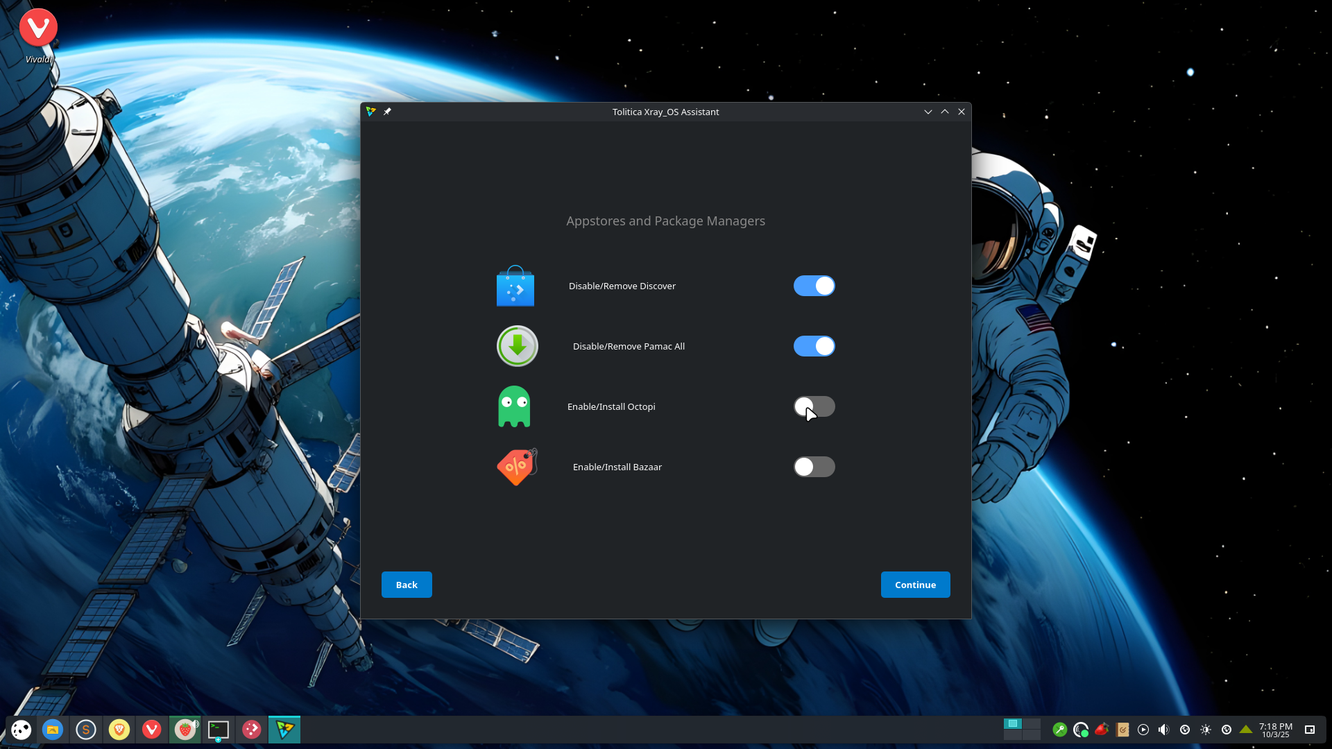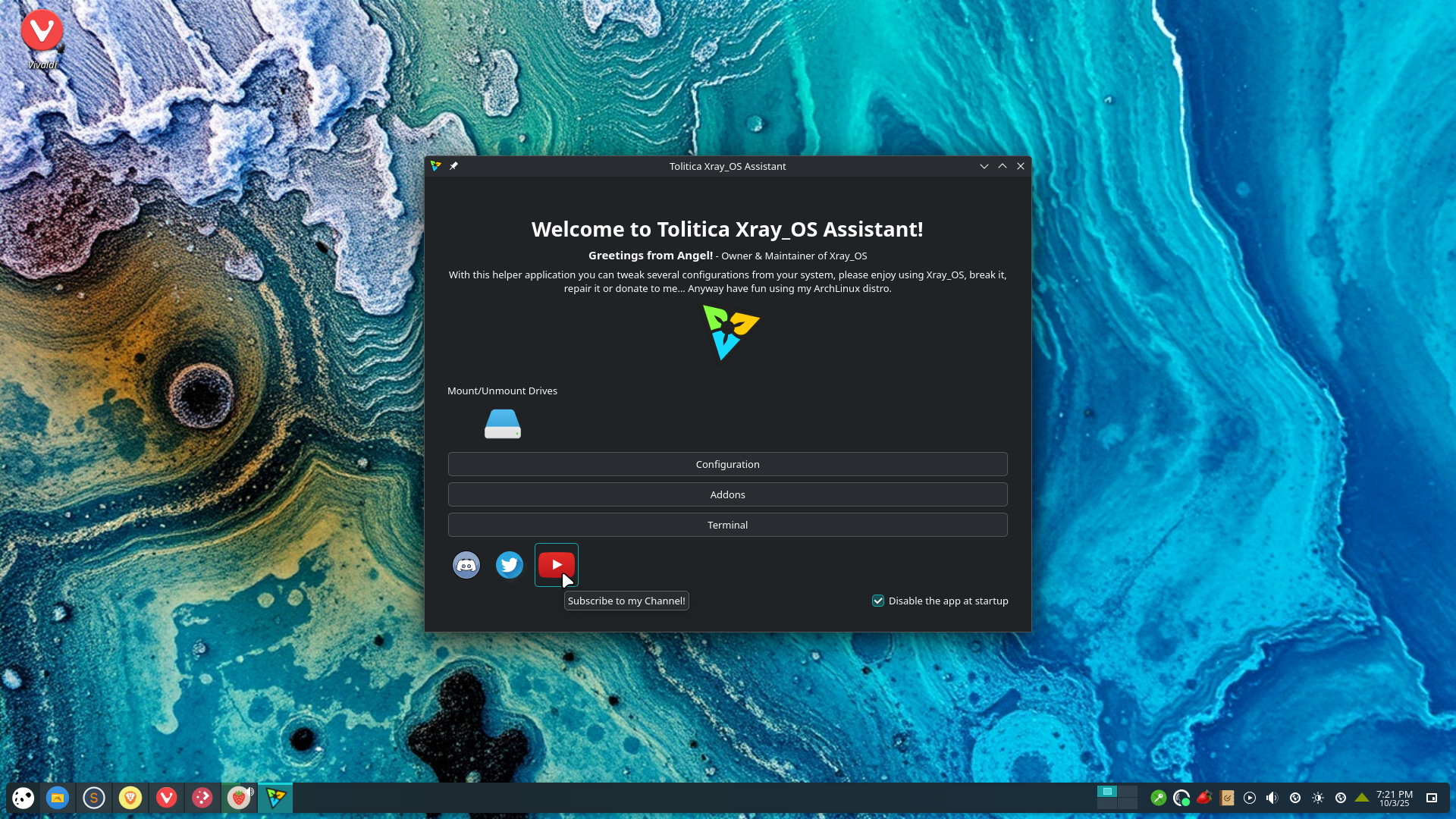 - Xray_OS has its own welcome application called Tolitica with several useful options.