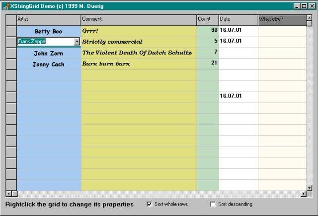 XStringgrid is an extended version of Delphi's StringGrid which adds advanced formatting, editing and sorting capabilities.