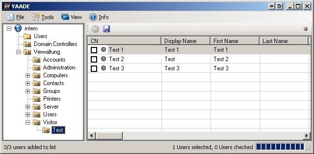 YAADE (Yet Another Active Directory Editor) makes it easy to edit multiple Active Directory users by displaying them in a grid-like listbox. Each cell can be clicked and then edited.