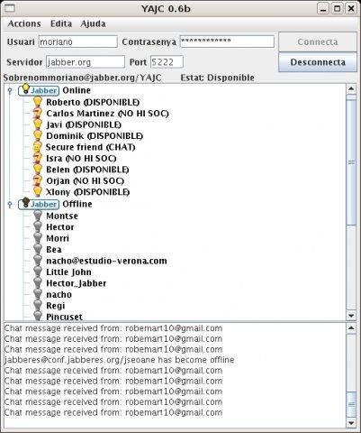 YACJ is yet another Jabber client, the intended main feature is to support encryption and digital signature being a secure client. It can also be used as a normal and easy-to-use Jabber client.