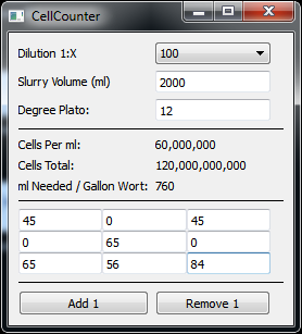 Yeas Cell Calculator is an aid for a hemocytometer in the determination of how much yeast is in a slurry.
