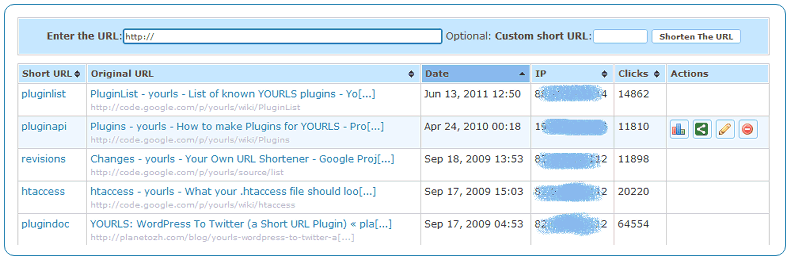 YOURLS stands for Your Own URL Shortener. It is a small set of PHP scripts that will allow you to run your own URL shortening service (a la TinyURL or Bitly). Running your own URL shortener is fun, geeky and useful: you own your data and don't depend on third-party services. It's also a great way to add branding to your short URLs, instead of using the same public URL shortener everyone uses. Private (your links only) or Public (everybody can create short links, fine for an intranet). Terrific Plugin architecture and dozens of plugins to easily implement new features. Awesome stats, historical click reports, referrers tracking, visitors geo-location. Includes sample files to create your own public interface and much more!