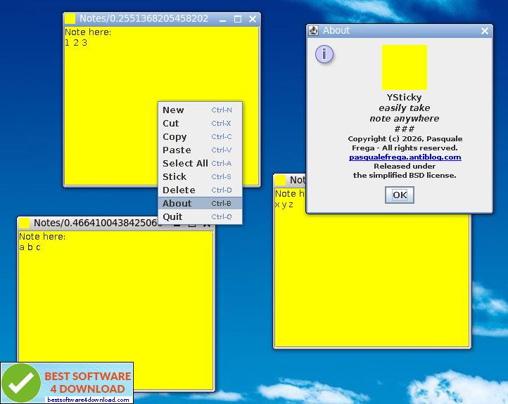 YSticky is a portable cross-platform reminder / sticky note application. It is very simple and its use recalls that of the real sticky notes in the following three steps: