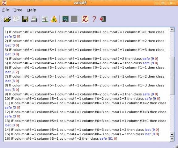 Zabal6 is a machine learning student tool based on decision tree learning, focused in the area of knowledge discovery (data mining), and inspired on See5. Zabl6 is a C++ program for Linux and windows O.S, with a intuitive graphical interface.
