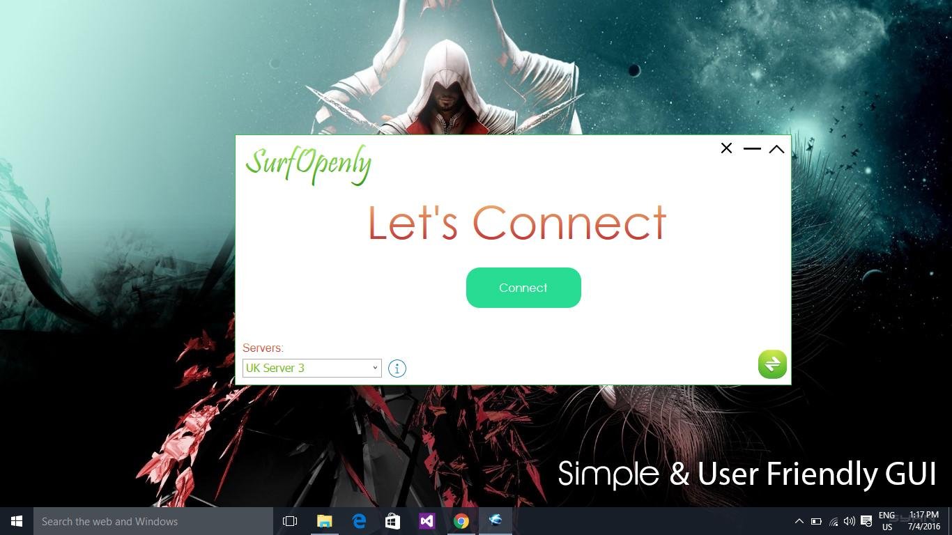 SurfOpenly is a reliable and lightweight application designed to help you connect to a VPN server from anywhere in the world. The software allows you to connect to the VPN server in order to navigate the Internet under the server address, instead of your system’s IP, thus protecting your privacy.