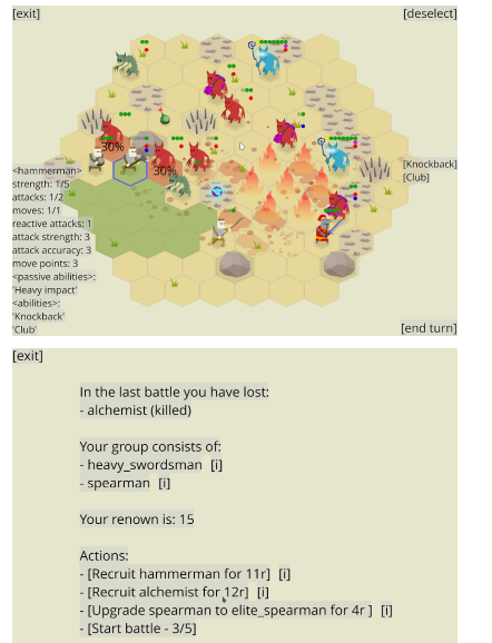 Zemeroth is a minimalistic, turn-based tactical game written in Rust that focuses on small-scale combat scenarios with a strong emphasis on strategic decision-making and emergent gameplay. It features hexagonal grid-based maps where players control a limited number of units, typically between three and six, in short, self-contained battles. The game is designed to simulate a digital tabletop experience, with mechanics such as reaction attacks, action interruption, and dynamic movement patterns that create highly interactive encounters. Zemeroth prioritizes simplicity in visual design, using clean 2D graphics and a limited number of sprites to maintain clarity and performance. It includes both native builds and a WebAssembly version that can run directly in the browser, demonstrating the flexibility of Rust-based game development. The project is structured to allow expansion into additional gameplay modes, including campaign systems and strategic layers.