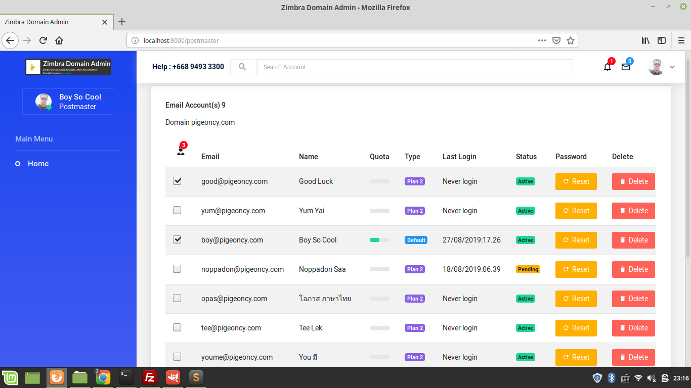 Zimbra Domain Admin for Zimbra Open Source Edition. A PHP web application developed from Zimbra Soap API. Zimbra Domain Admin can list, add, delete and change password of their user domain without Zimbra global admin right.