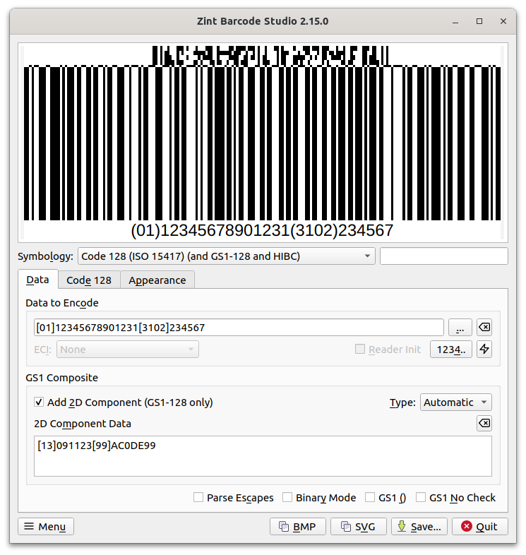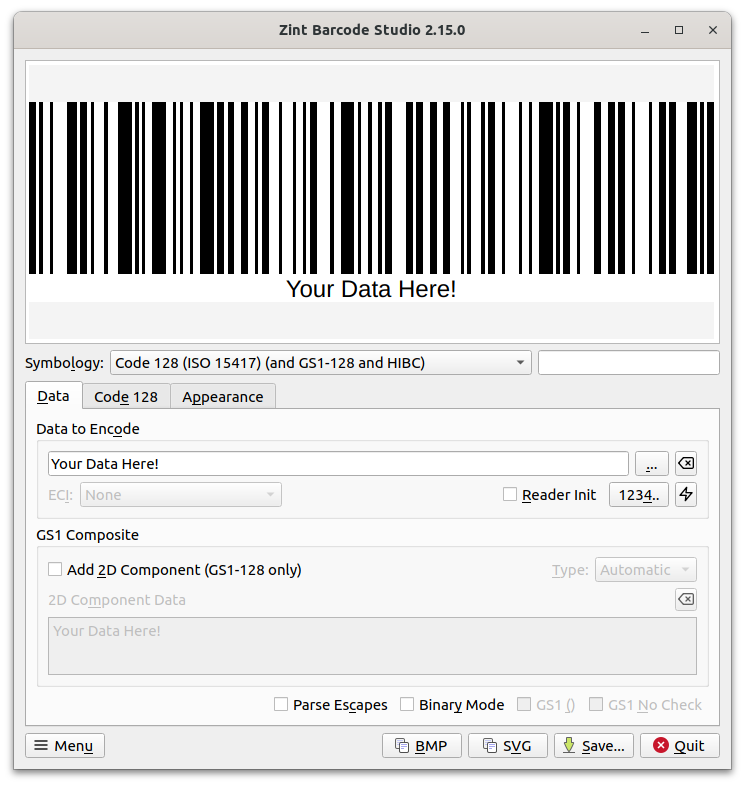 Automated ECI switching to support all Unicode characters and automated FNC1 character insertion in GS1 mode. Save to BMP, EMF, EPS, GIF, PCX, PNG, SVG and TIF. Includes CLI, GUI and API for calling from other applications.