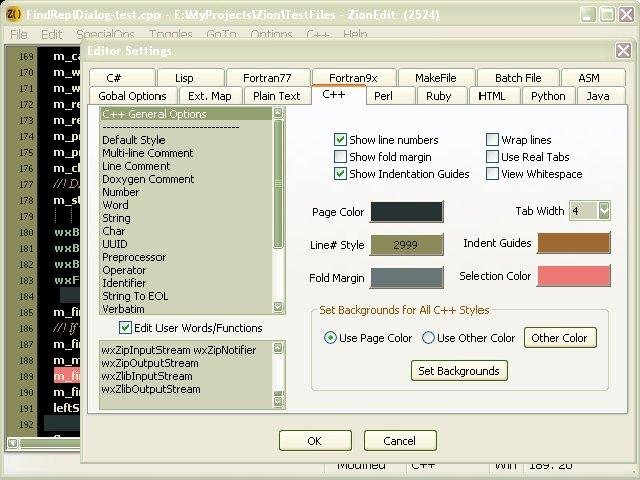 An intuitive, very configurable, uncluttered programmer's editor based on the awesome Scintilla component & wxWidgets. Supports C/C++, C#, Java, SQL, CSS, HTML(JavaScript,PHP etc), Python, Perl, Ruby, Lisp, Fortran, Assembly, Batch, Makefile --for Win32.