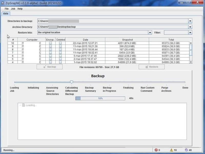 ZipSnapNG is a portable multi-platform backup tool which, despite its simplicity (200Kb and no installation required), provides advanced features such as incremental backup, data deduplication, encryption and configurable retention.