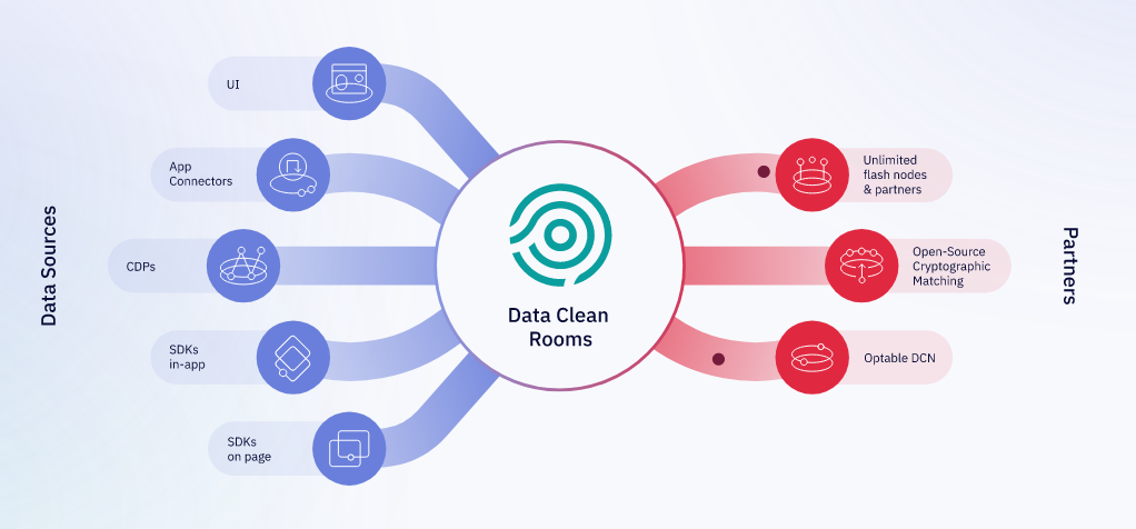End-to-end data clean room platform, integrated for activation. Publishers and advertisers use Optable data clean room technology to securely plan, activate and measure advertising campaigns. A new generation of privacy-preserving data collaboration software. Optable customers can collaborate with their customers and partners, including those who aren't Optable customers themselves. This can be done using the platform's Flash Nodes, allowing to invite other parties into a secure environment. Optable offers a decentralized identity infrastructure, allowing to build of private identity graphs. The infrastructure provides means for creating purpose-limited, permission data clean rooms that minimize data movement. Interoperability with data warehouses and other data clean rooms is key. The use of our open-source software allows third-party platforms to match data with Optable customers, as well as implement secure clean room functions for their own use.