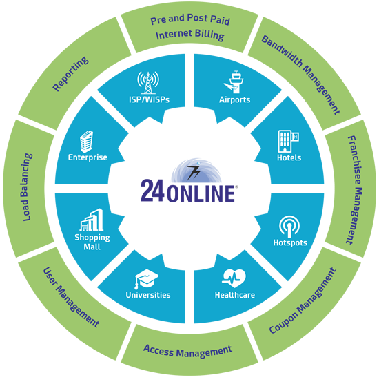 24online ISP solution offers advanced AAA RADIUS server, internet billing system for prepaid – postpaid billing, rating and charging, franchisee and subscriber management for new operator as well as existing Internet Service Providers (ISP). 24online HIA solution offers bundled features like advanced access controller for guest AAA RADIUS solution, hotel Wi-Fi Hotspot management software, bandwidth management, walk-in coupon management and many more for single and chain of hotels. As per the recent study, 63% of business travelers globally check the availability of Wi-Fi services. Internet connectivity through wired or wireless network infrastructure is a basic necessity at enterprises. Coffee shops and cafes have become prime spots for meetings and discussions. Added facility of internet. Visiting a restaurant and expecting Wi-Fi access is very common these days. Everyone wants to stay.
